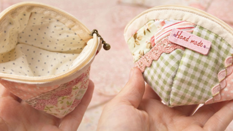 Leer Más "Cesta de patchwork" Monedero Ovalado de retales